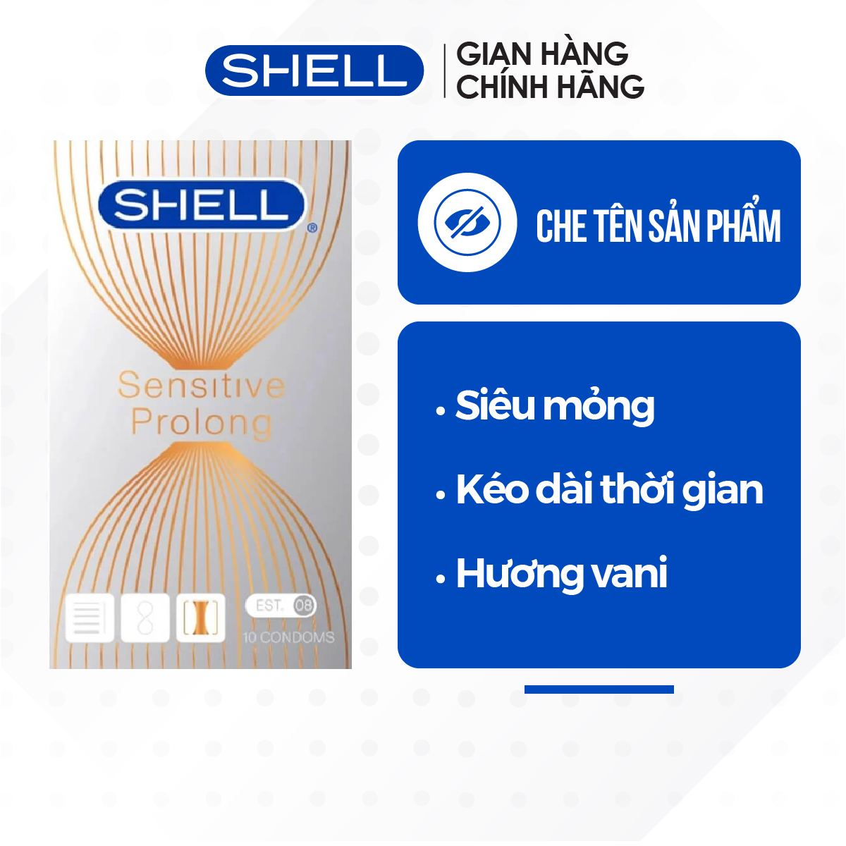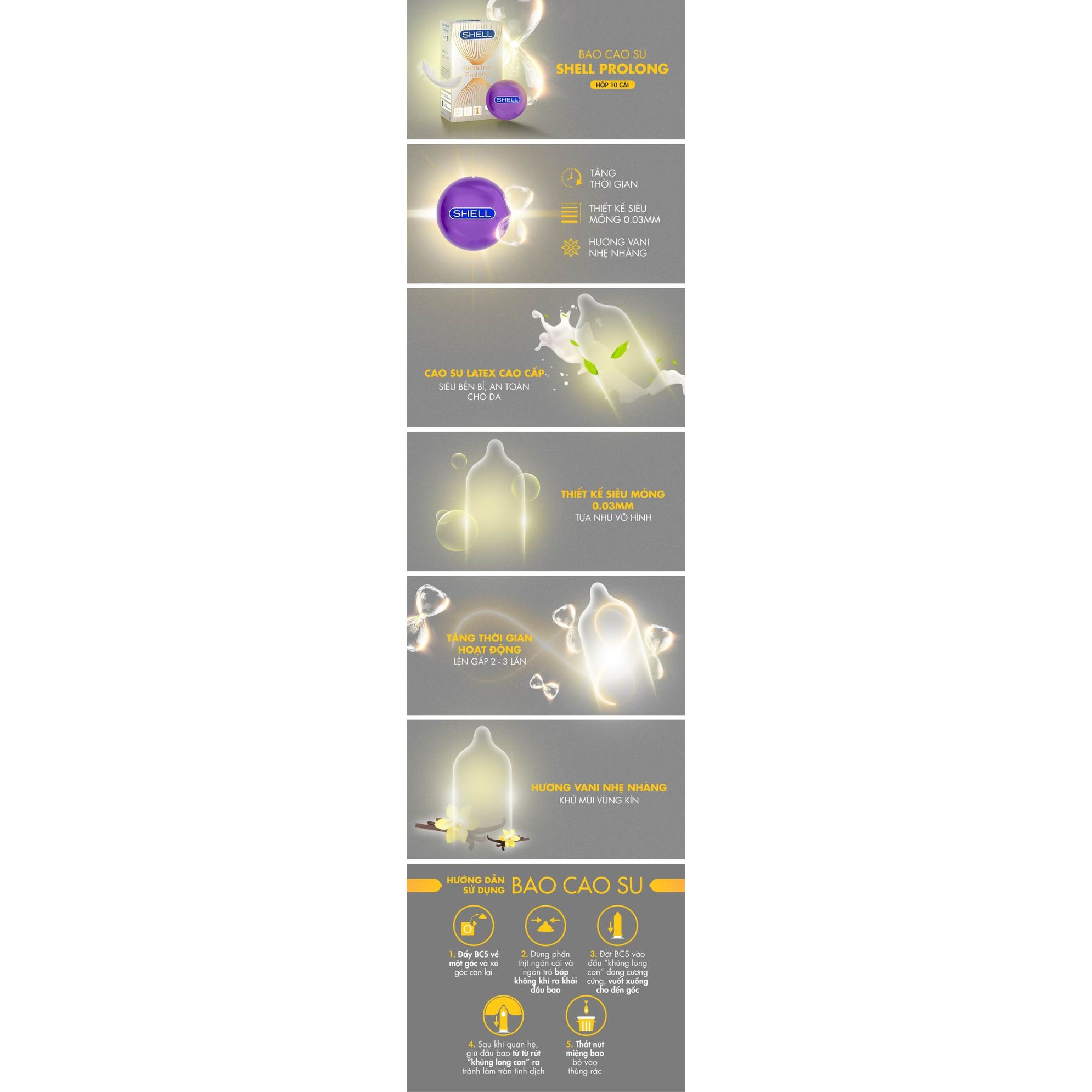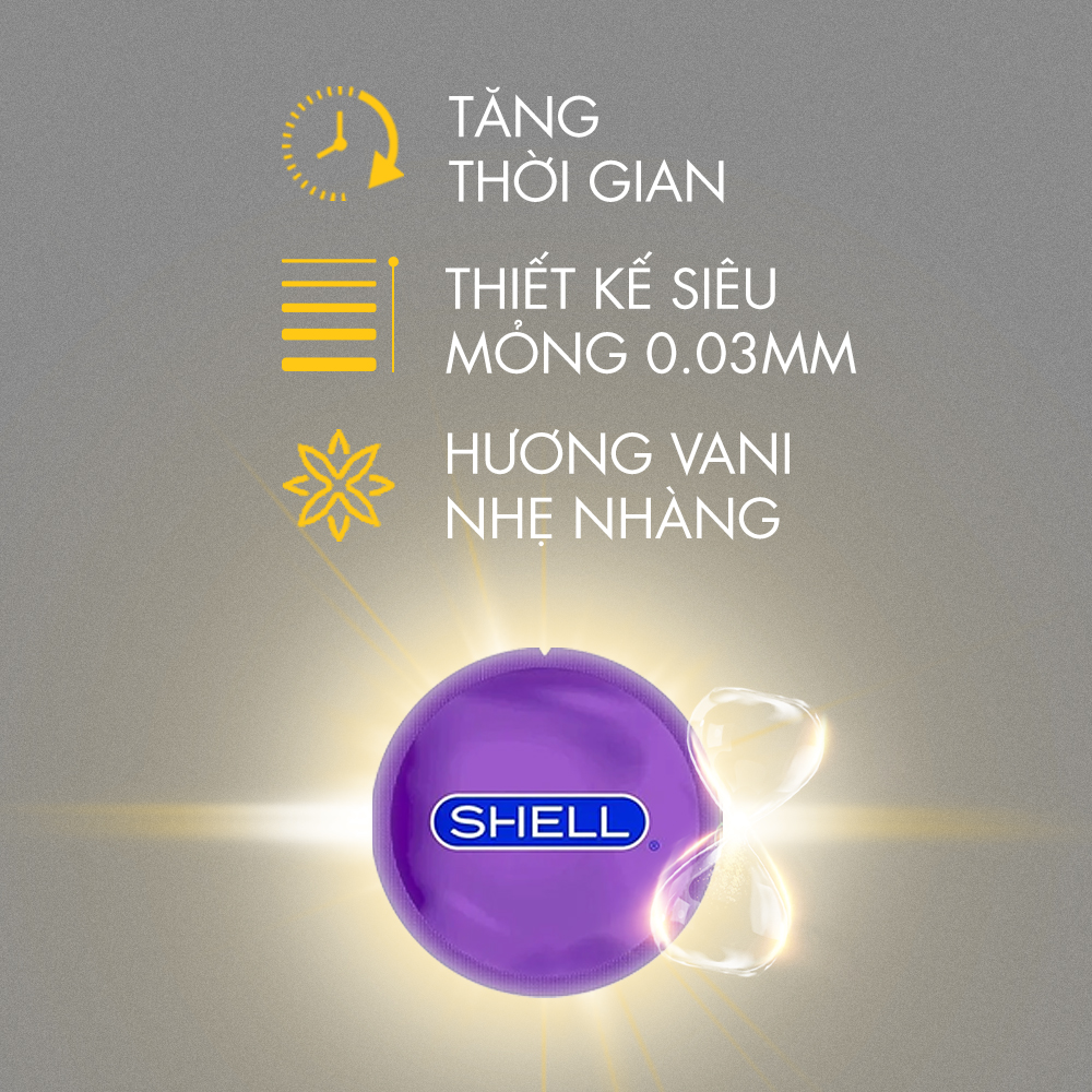 Bao cao su Shell Sensitive Prolong - Siêu mỏng 0.03mm, kéo dài thời gian - Hộp 10 cái | Gian hàng chính hãng