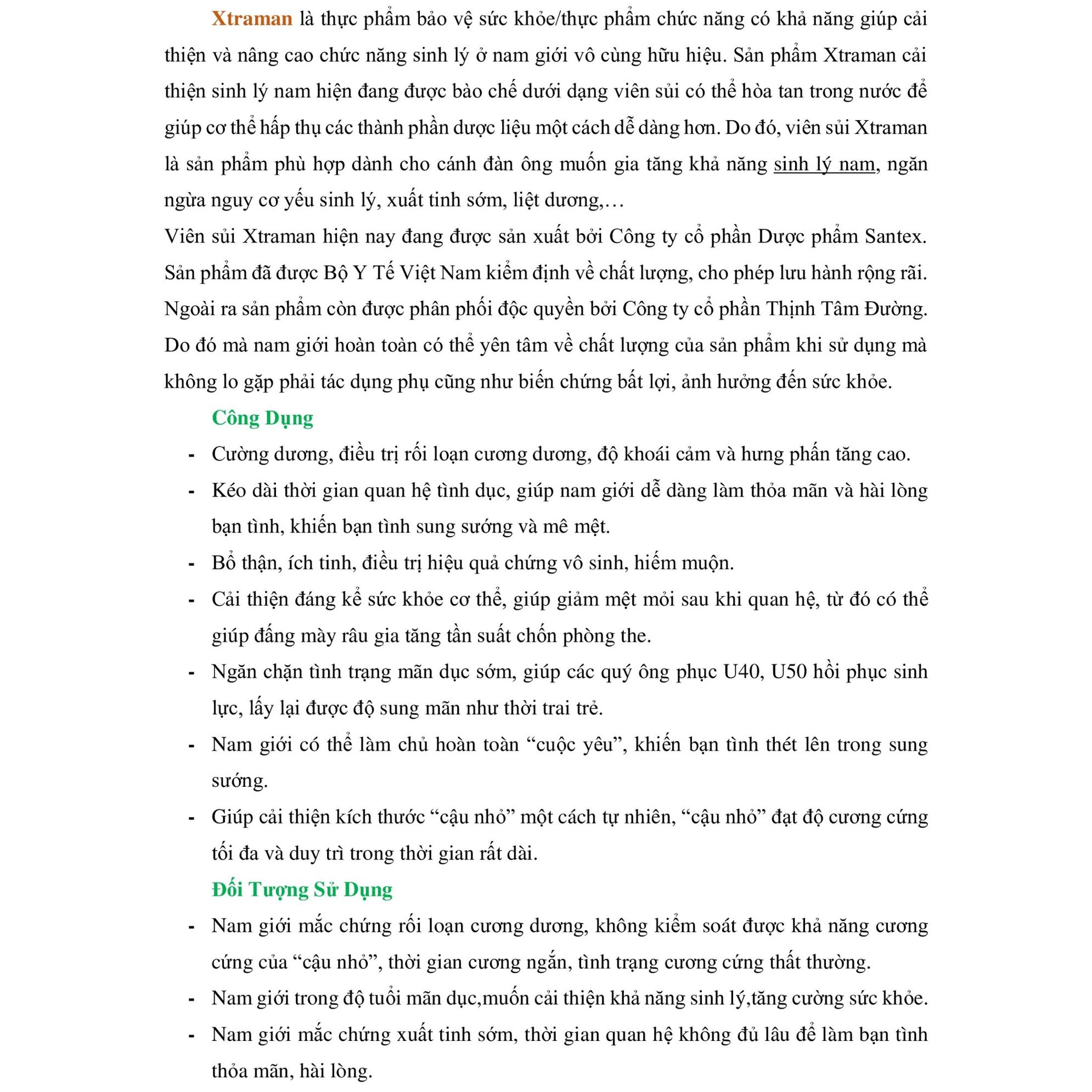 Combo x3 (Mua 2 tặng 1) Viên sủi XTRAMAN cao cấp tăng cường sinh lý nam mạnh mẽ (hộp 20 viên) - hàng chính hãng ( xtra extra man xtramen men xtrman )