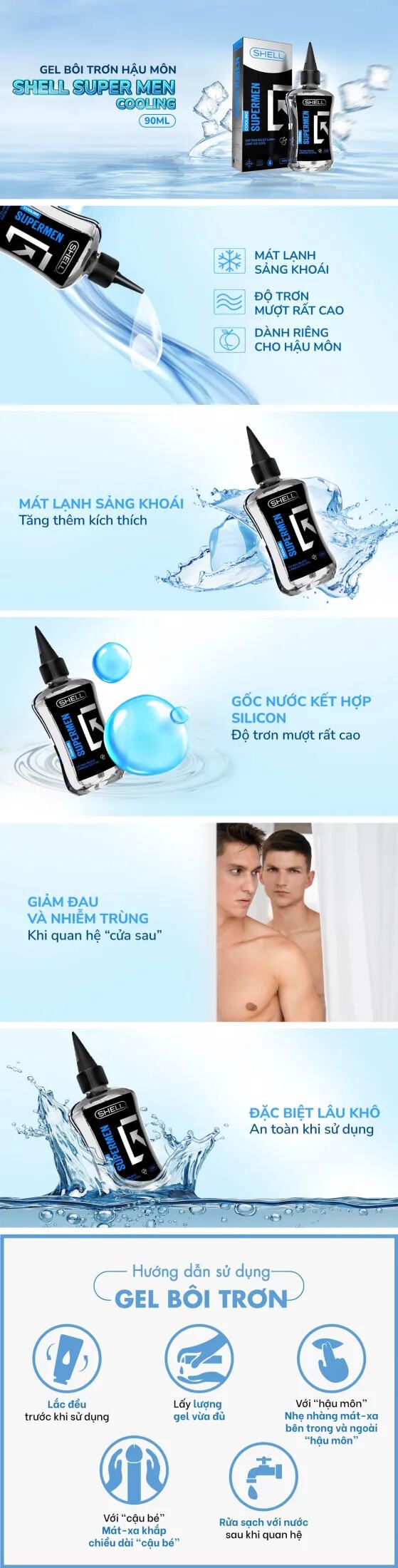 - Thông tin: Nếu bạn đang tìm kiếm sản phẩm không chỉ hỗ trợ quan hệ truyền thống một cách trơn tru, mà còn hỗ trợ quan hệ cửa sau dễ dàng, giúp giảm cảm giác đau rát khi ân ái, thì Gel bôi trơn hậu môn Shell Supermen Cooling là sự lựa chọn tin cậy.