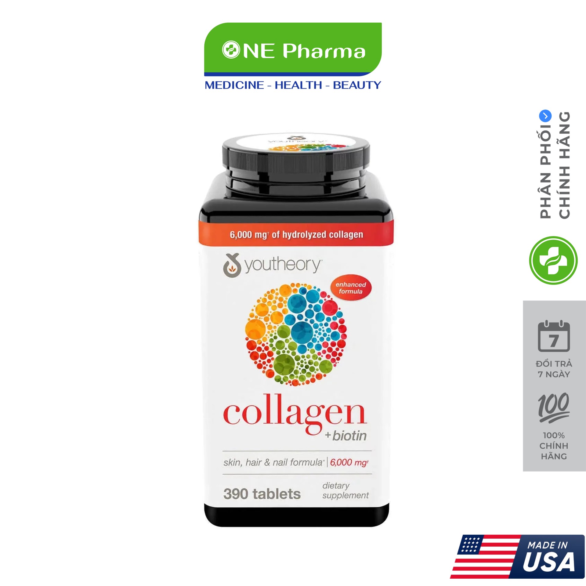 Viên Uống COLLAGEN MỸ Đẹp Da Chống Lão Hóa YOUTHEORY 390 Viên USA